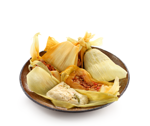 This is a traditional Mexican dish made of masa or dough (starchy, and usually corn-based), which is steamed in a corn husk or banana leaf.