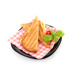 Mozzarella cheese and fresh basil leaves make a wonderful summer sandwich when combined with dark artisan bread and white truffle oil.